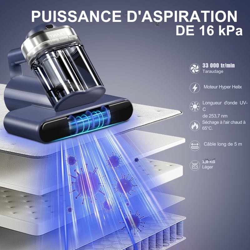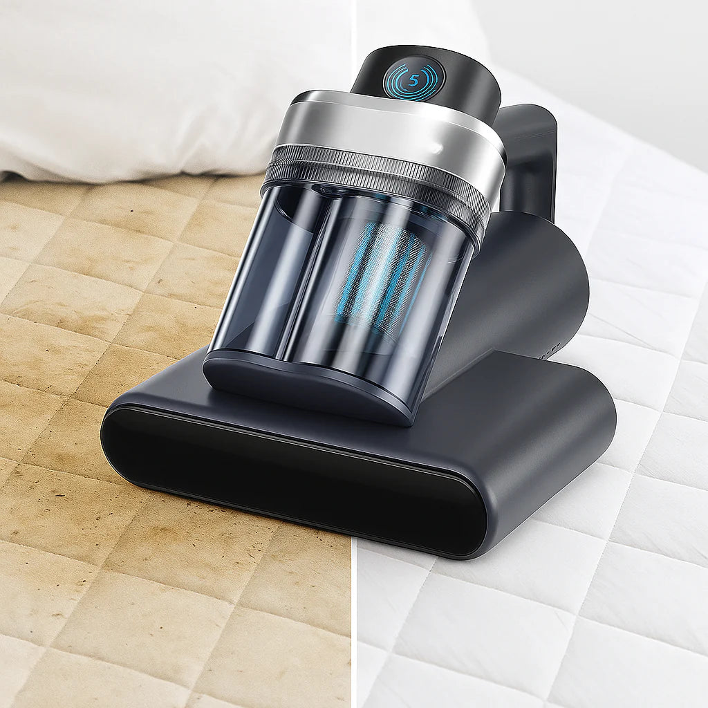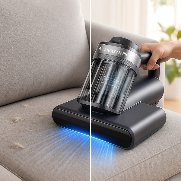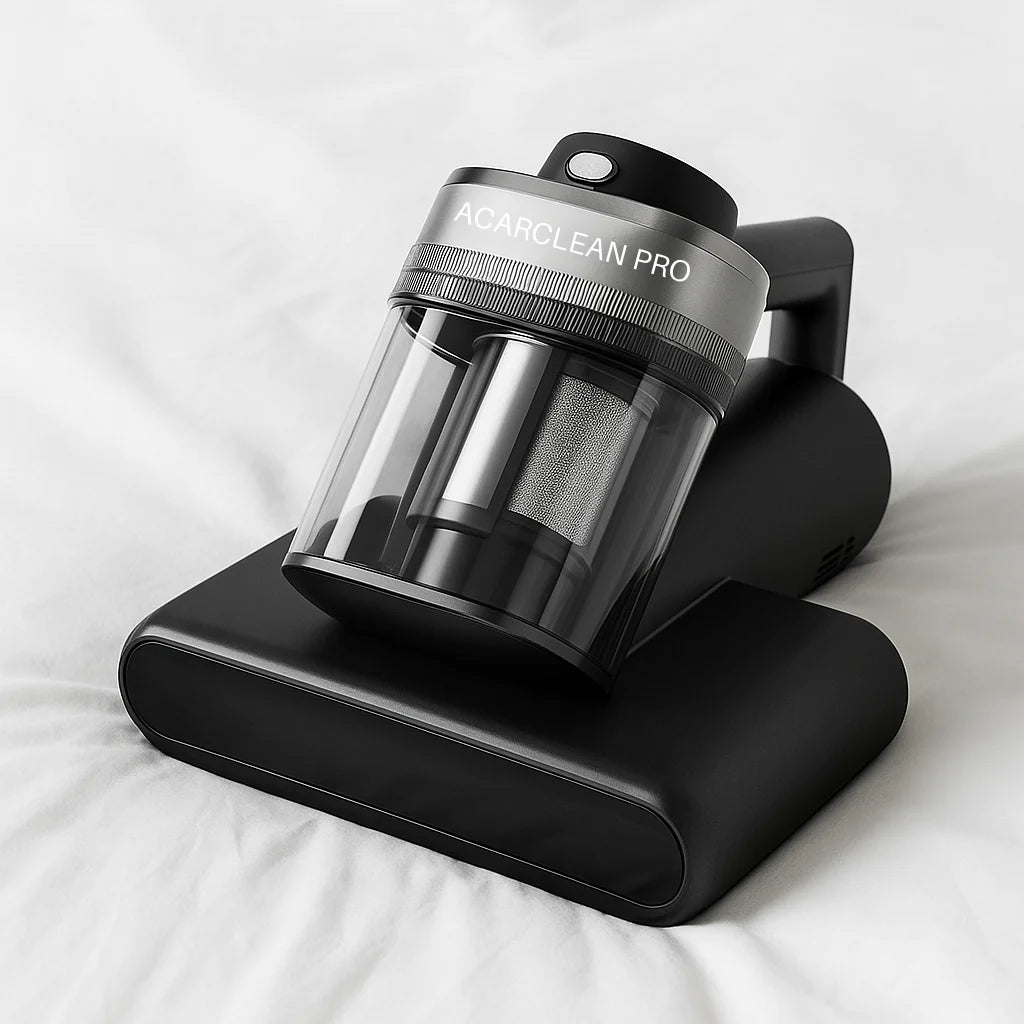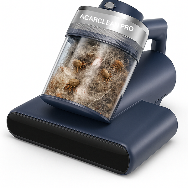 AcarClean Pro est le seul aspirateur conçu pour lutter contre ce problème caché : les vibrations ultrasoniques les éliminent, l'air chaud et les UV-C les neutralisent, et le filtre HEPA retient leurs résidus.